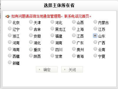 2、點(diǎn)擊右下角,找回備案密碼,選擇你所在地區(qū),這里我舉例的是我們山東省境內(nèi)的網(wǎng)站備案密碼找回: